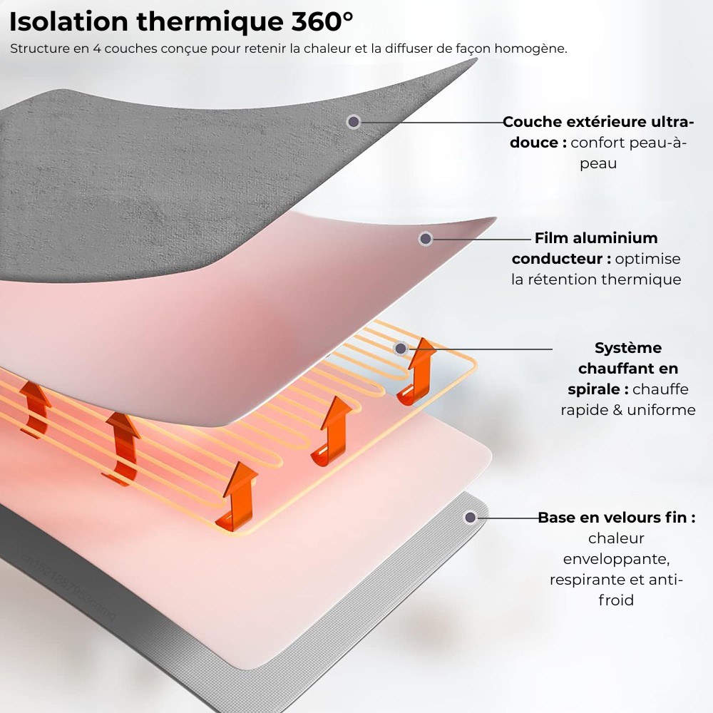 Fini les soirées à grelotter ou à surchauffer la maison. Cette couverture chauffante vous enveloppe d’un confort instantané, apaise les tensions et transforme chaque moment de repos en véritable cocon de bien-être où que vous soyez.